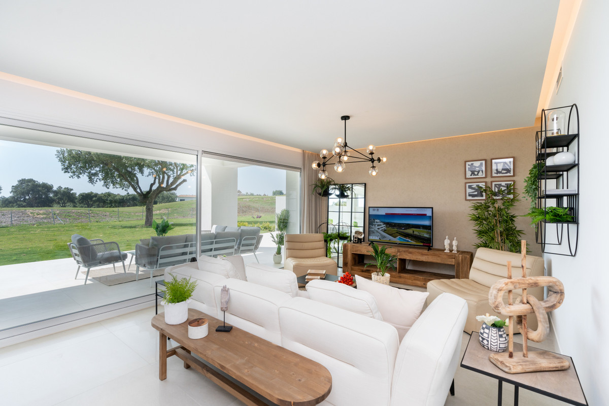 The interior of the homes is based on the "open plan" and "total living" concepts, giving priority to a spacious living room which leads to a large open terrace, both fully integrated into the surrounding corn oak meadows and making the most of the predominantly southern aspect and the views of the golf course and the sea.
