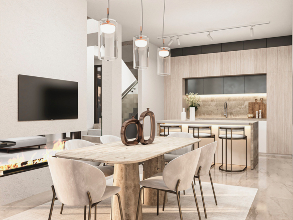 Currently in the project phase with a granted building license, construction will begin immediately upon sale. The villa blends contemporary architecture with noble materials and clean lines, creating a timeless design that integrates seamlessly with the natural surroundings. Floor-to-ceiling windows and open-plan spaces with double-height ceilings allow natural light to flood every corner of the home.