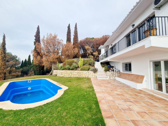Beautiful Villa in perfect condition with wonderful sea and countryside views and 100% privacy and tranquility, located in secure development, 6km from Mijas Pueblo and Fuengirola 12km.