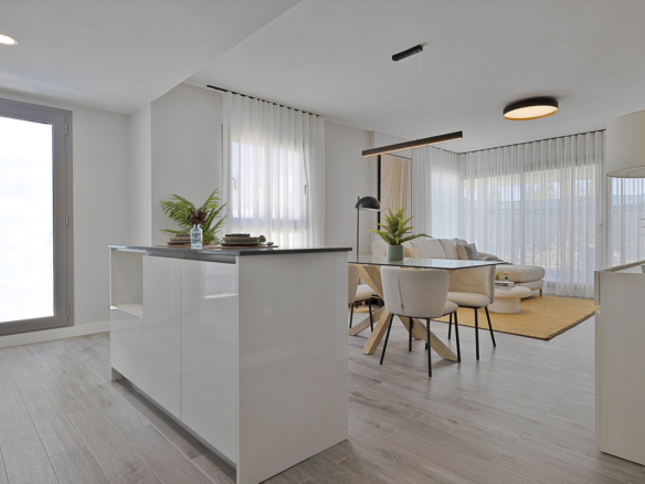 The properties offer wide spaces, open kitchen with island, living room and bedrooms with direct access to the terrace.