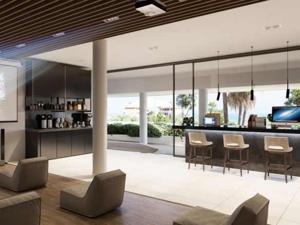 Moreover, these exclusive residences boast a garden terrace on the kitchen-living room floor and a spacious solarium terrace of approximately 70m². The exclusive common areas include two communal pools, one of them with an infinity effect overlooking the sea, a luxurious exclusive Spa, a gym equipped with TECHNOGYM equipment, and a coworking space with a cinema area. The project stands out for its focus on providing a luxurious lifestyle and exceptional common facilities for the residents.
